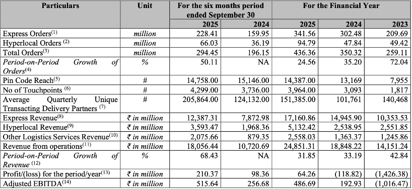 The company operates across express logistics, hyperlocal delivery, and specialised critical logistics, supported by India’s largest crowdsourced last mile fleet and a fully leased, asset light infrastructure. Its nationwide network spans over 14,700 pin codes and processed more than 436 million orders in FY2025. Proprietary technology systems power delivery partner management, route optimisation, fraud detection, and real time order allocation. Revenue is earned on a per order basis, with pricing linked to service type, distance, shipment weight, and delivery complexity.