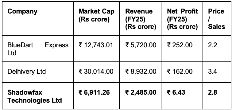 Shadowfax Technologies Limited is a technology led third party logistics provider enabling digital commerce across India through a large scale, asset light delivery network and proprietary technology. Incorporated in 2015 and converted into a public company in 2025, the business is promoted by its founders Abhishek Bansal and Vaibhav Khandelwal. Shadowfax has emerged as the fastest growing 3rd Party Logistics player of scale, expanding its e-commerce market share from about 8 percent in FY2022 to nearly 21 percent by June 2025, with leadership positions in quick commerce, reverse logistics, and same day delivery.