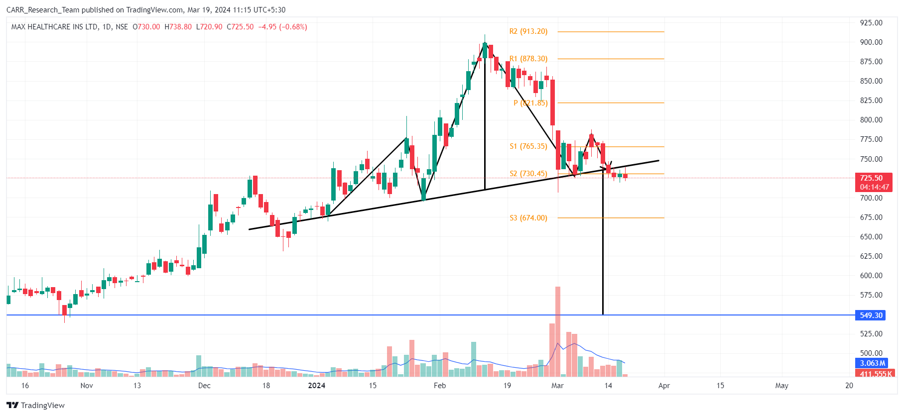 Since its listing on the NSE board, the stock has shown upward trends. From January 2024 to March 2024, a head and shoulder pattern materialized on the daily chart. On March 14, 2024, the stock broke out of this pattern. Subsequently, it has been descending. Presently, the stock's RSI indicates a low level. As per technical analysis if this trend continues, the stock might undergo further decline.