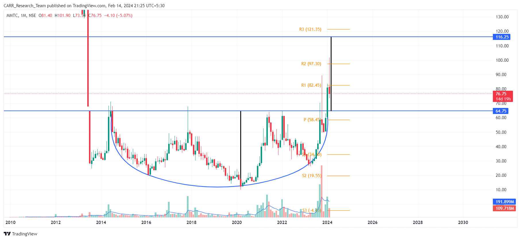 Since its listing in 2010, the stock underwent a substantial downward trend. From July 2014 to January 2024, it stabilized and formed a rounding bottom pattern. In January 2024, the stock surpassed its July 2014 levels, marking a breakout from the rounding bottom pattern with robust trading volume. Following the breakout, the stock is currently on an upward trajectory. According to technical analysis, sustaining the breakout level may lead to a continued upward trend for the stock.